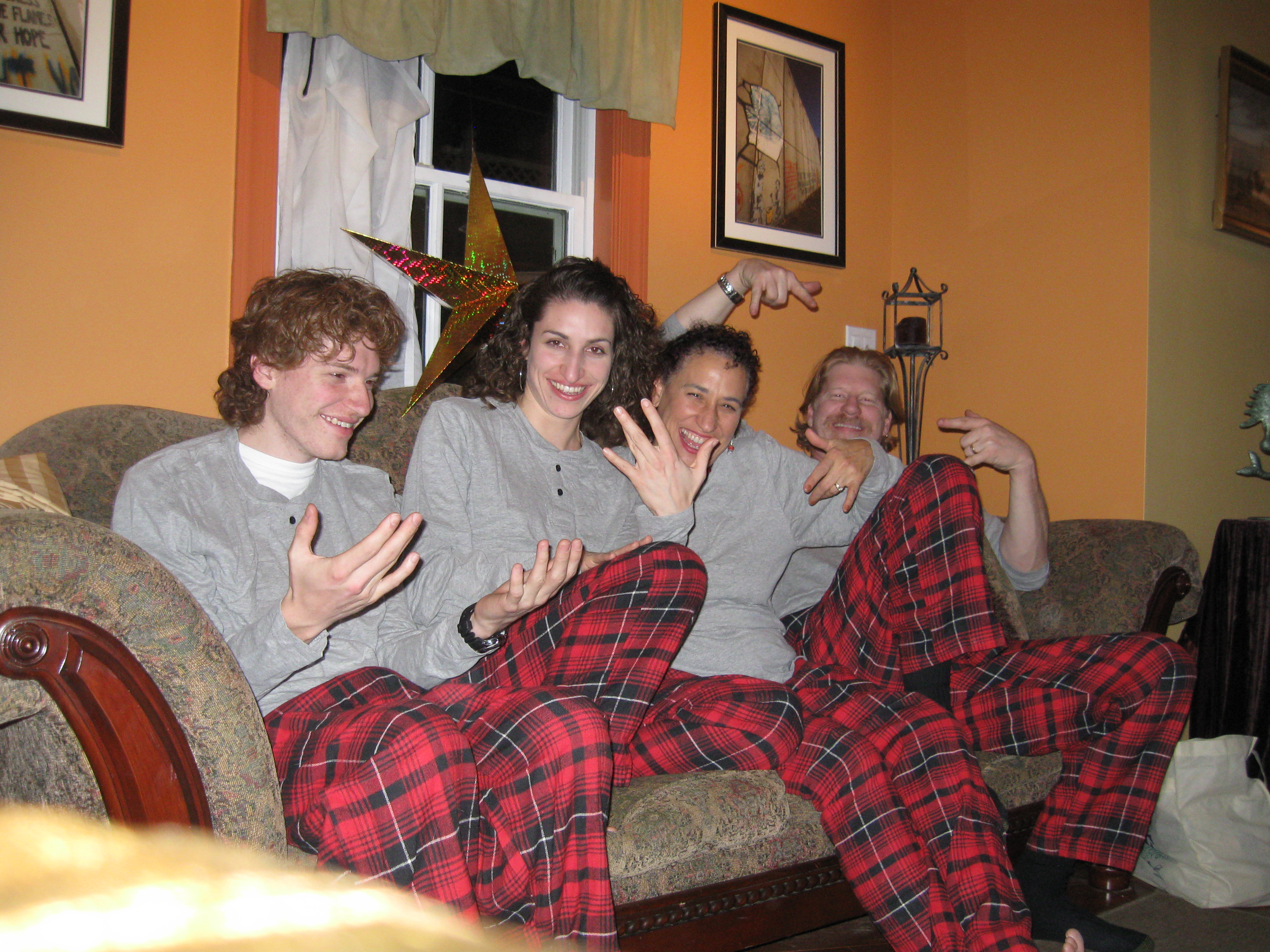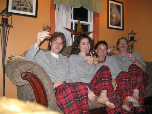 My brother’s not particularly pious, and nor am I, which is why I suppose it makes perfect sense that our Christmas Eve traditions consist of going to church, trying not to crack up during Silent Night and finally posing for pictures in our new matching pajamas with our wine glasses: