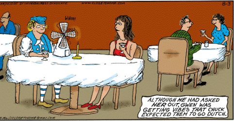 Wow… interesting comments. I must admit that I am feeling kind of backwards about this. I am an old fashioned girl who likes old fashioned good manners. I do expect a man to hold the door open for me, take my coat, and walk on the outside of the sidewalk. And I think it shows respect on the first few dates that they pay. I become comfortable with the whole “Dutch” thing only after I have gotten to know the person a little better. I do consider myself a feminist, I can certainly pay my way, and I am not in it for the free dinner. It is the gesture, old fashioned or not, that says something to me.
