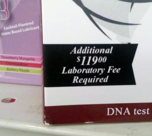 Furthermore, do you really need any more cocktail-flavored, water-based lubricants? I mean seriously, buttery nipple, strawberry margarita and cosmopolitan-flavored lube? Right next to the DIY Paternity Test? I’m going to have to start hanging out in the bargain basement more often because the potential for blog fodder is just too good.