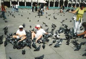 There are literally thousands of them—probably tens of thousands—and even worse are the tourists who encourage the diseased vermin by smattering travel-worn khakis with birdseed and lying down in the middle of the square.