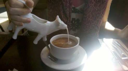 We went to Beau Monde, which has the most amazing coffee creamer holder (dispenser? container? thingamagig?) that I’ve ever seen:
