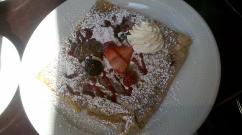 There, we dined on mixed berry and chocolate crepes, which, as you can see, were also quite pretty: