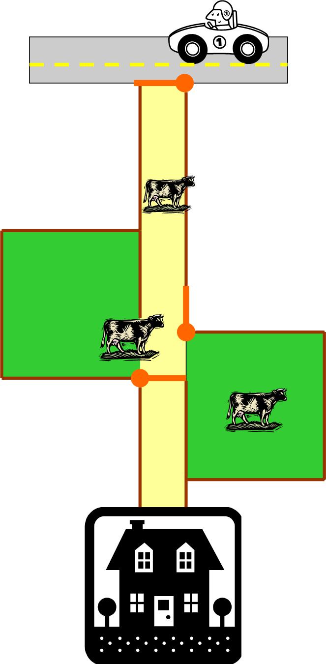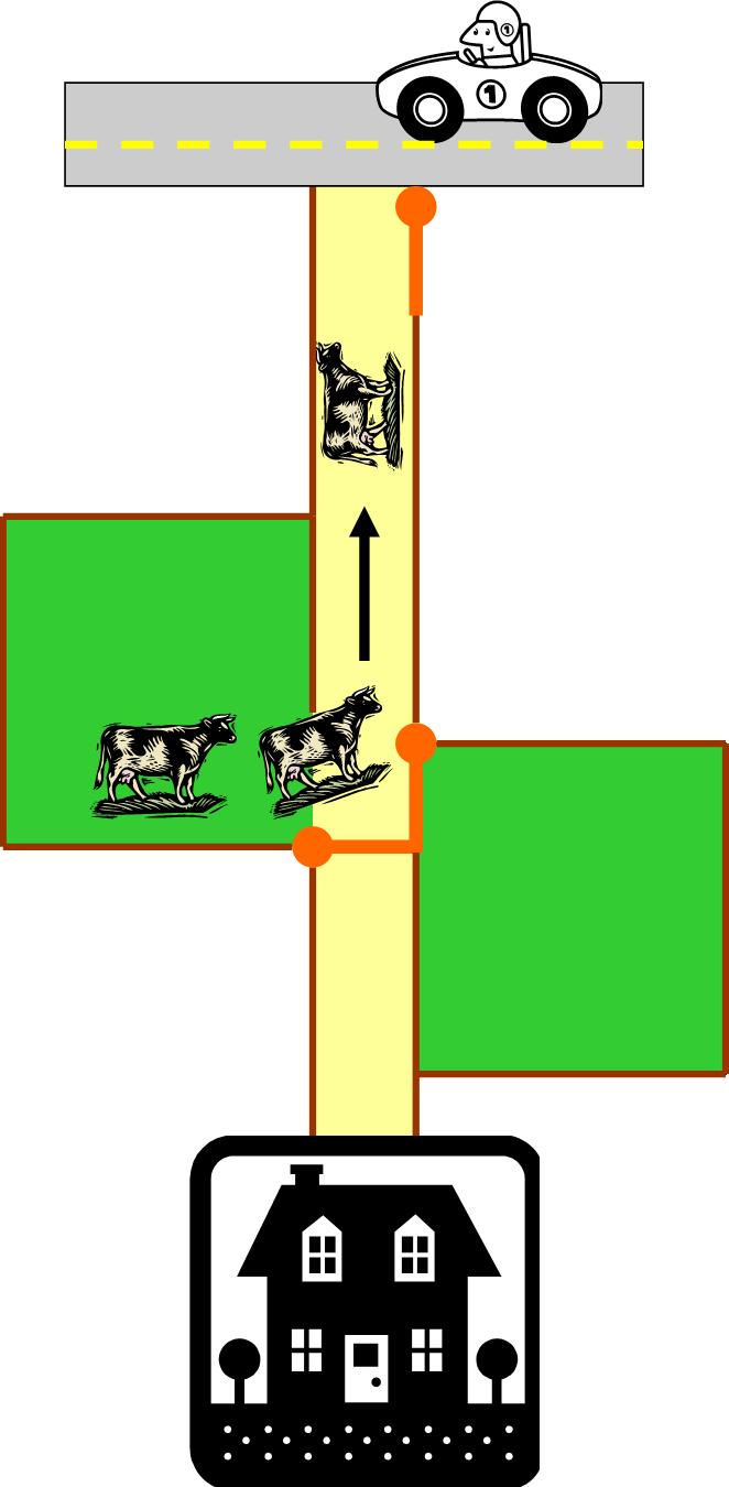 I’ve compiled the following diagram because even though I like to think I’m a fairly decent writer, I’m often baffled by feats of modern engineering (ie. gates, and while we’re on the subject: gas station pumps. I once circled a pump three times in order to get my fuel door on the correct side, but the car-to-pump alignment never changed). In additional, please note that I created the following without internet access and couldn’t find any horse clip art in Microsoft publisher so just pretend that these rather docile looking cows are actually horses.