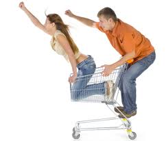 Step 9) Happy couple buys GROCERIES!  What fun!!!  (And what a great place for making out.)