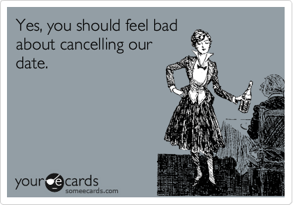 I’ve learned a thing or two over the past 24 hours, however, so when Date #9 cancelled without the offer of an alternative date, I didn’t respond. I waited a full eleven minutes before bothering to say anything (fortunately, for the sake of my phone bill, we were chatting online rather than the phone). I used the time to respond to my Facebook messages (which included something of a dating-consultation request from a man who may or may not become Date #15) and tried to figure out what to say in response to Date #9’s apology.