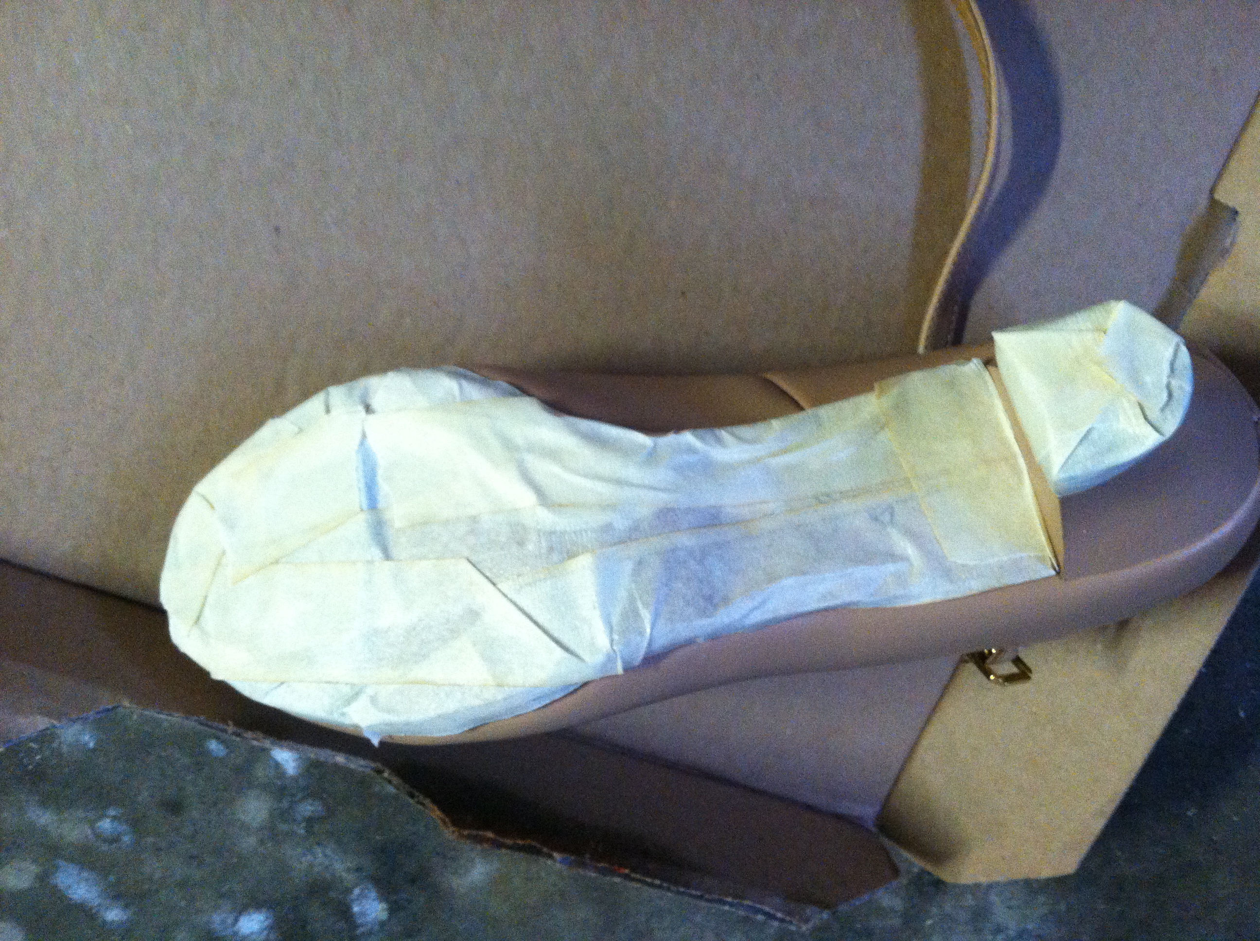 Also, stuff the shoes with newspaper to accommodate for less-than-precise spray painting. If using your dad’s garage to spray paint, it is best to do it while he is not home and to destroy the evidence. Blame any residue on bio-diesel. You know… that purple bio-diesel.