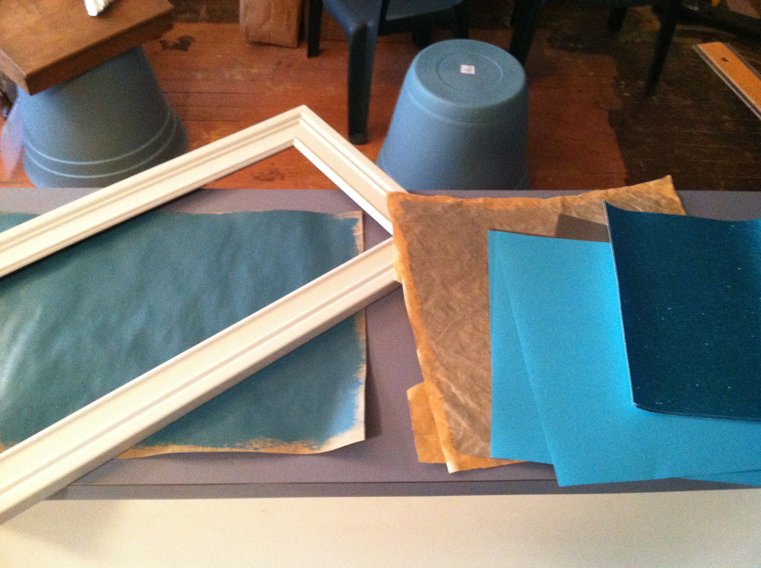 - Cheap frames (I used brown wooden glass cabinet doors minus-the-glass that I picked up at the Habitat Restore for a buck each.)