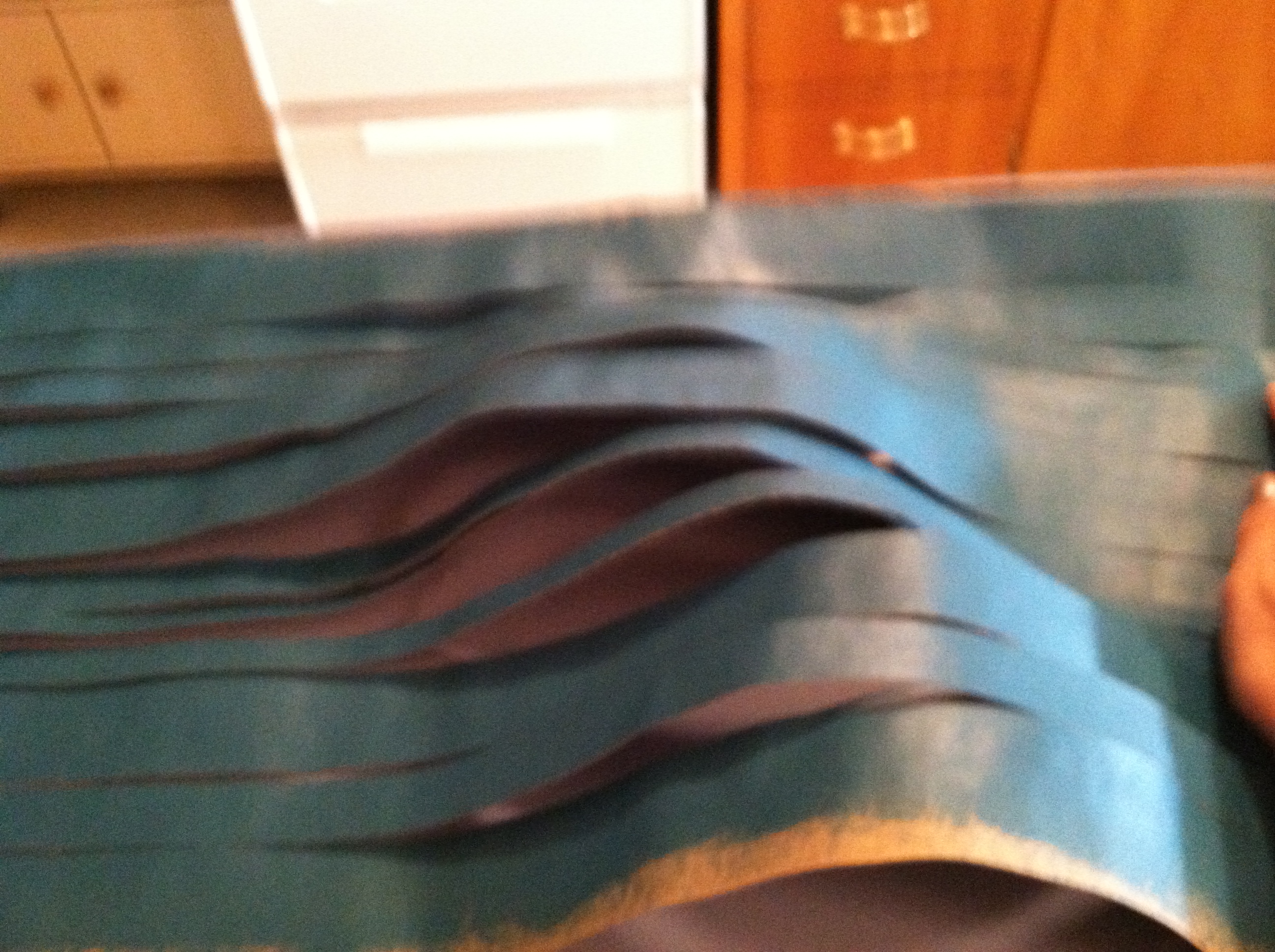 When you finish weaving, check that all of the edges are glued down. This is back of the finished product.