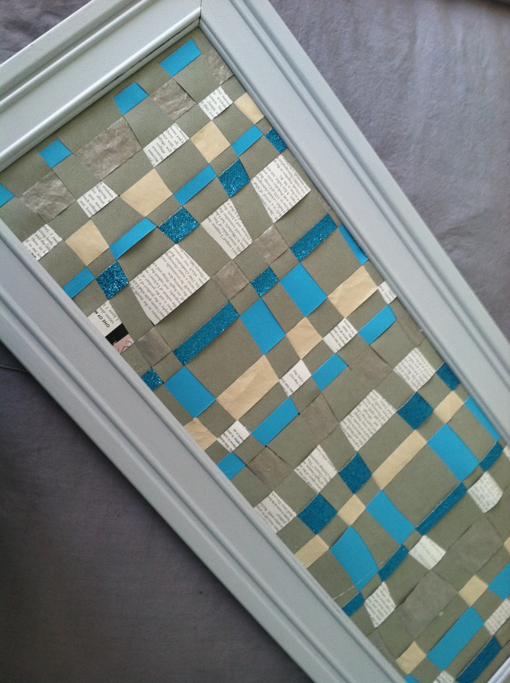 - Trim any excess paper and glue your weaving into the frame. I tried to staple gun mine but the frame wasn’t thick enough and the staples went right through so measure first if you’re going to try stapling.