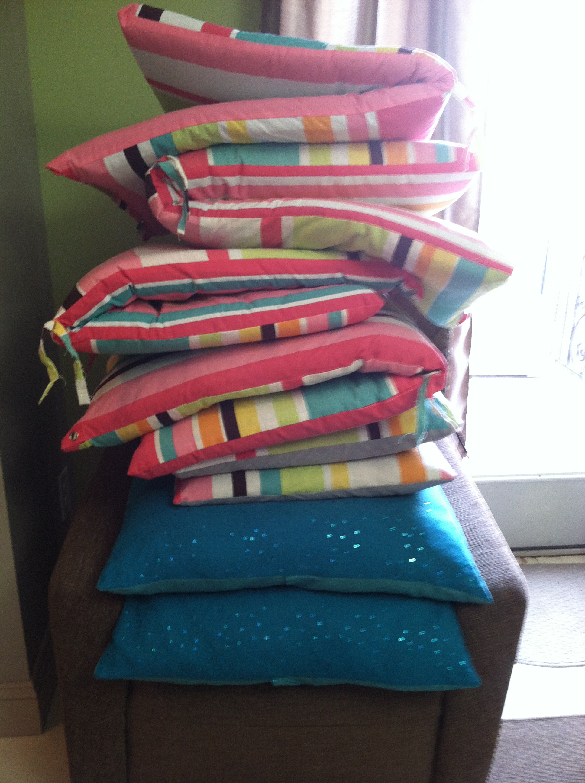 I have a thing for cushions. Pretty cushions. Comfy cushions. Pottery-Barn-looking-cushions. (For this I blame the man I was dating last summer; he used to save his ex-wife’s Pottery Barn catalogs for me and oh how they made me drool!)