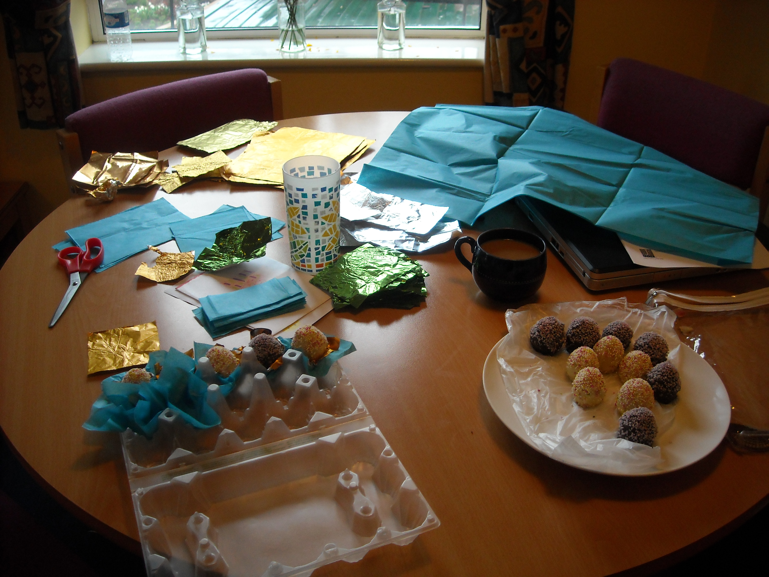 - Knife, spoons, cookie sheets, wax paper and a double boiler or two sauce pans