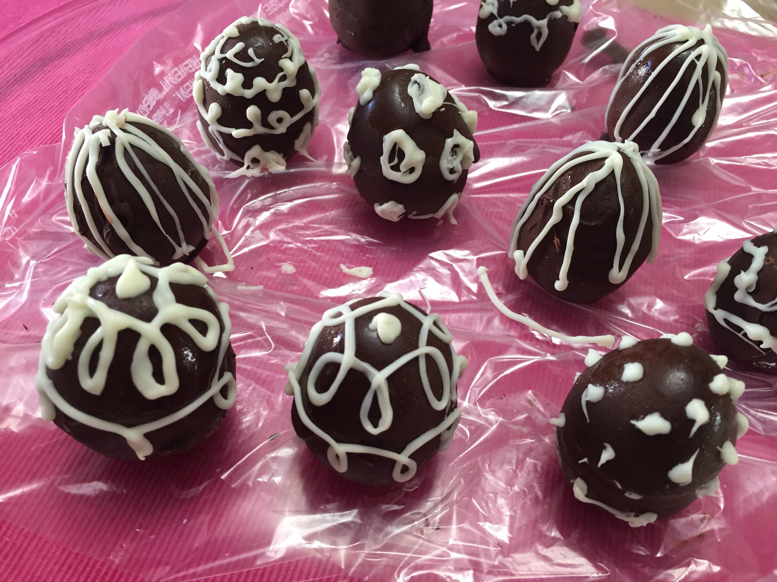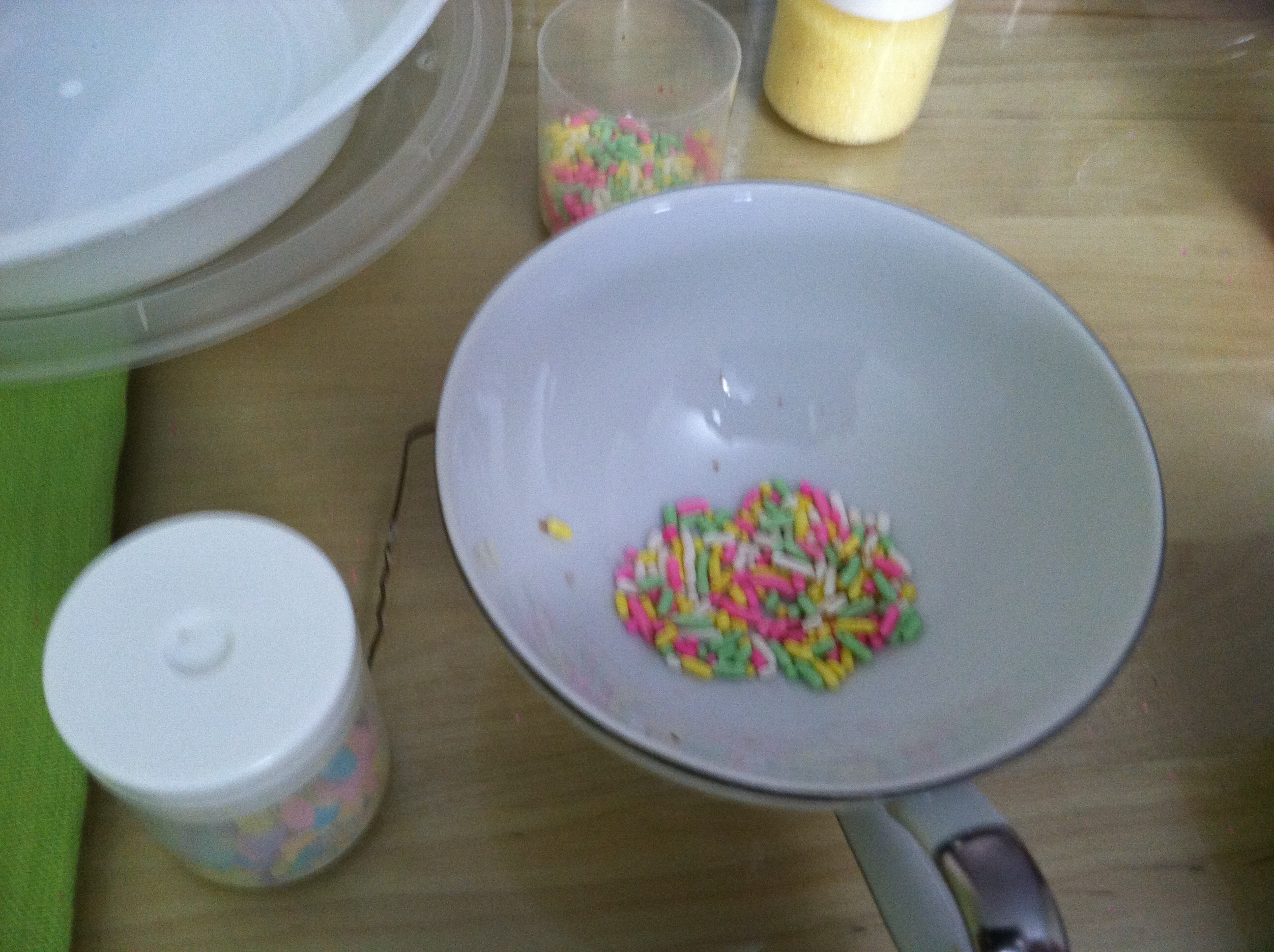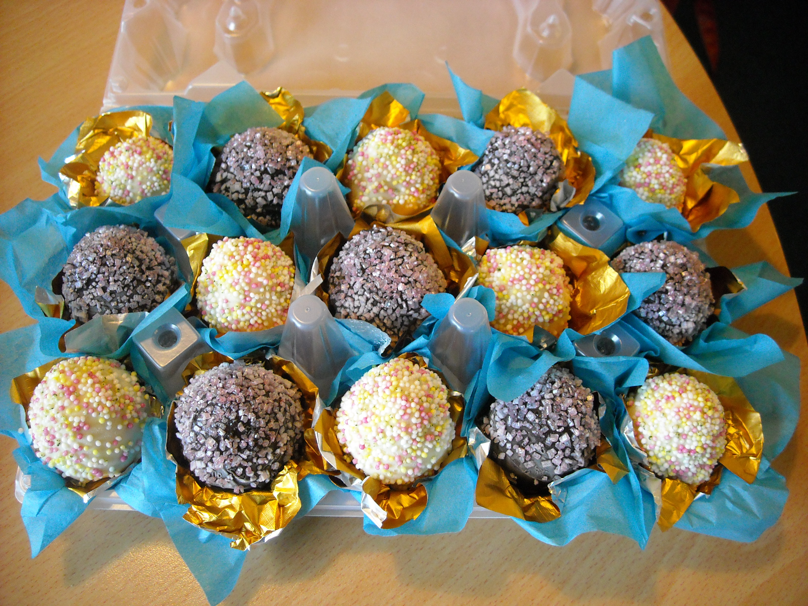 - Rolls each piece into an egg-shaped ball (they should be smaller than regular sized eggs because the chocolate and sprinkle coating will cause them to fill out a bit)
