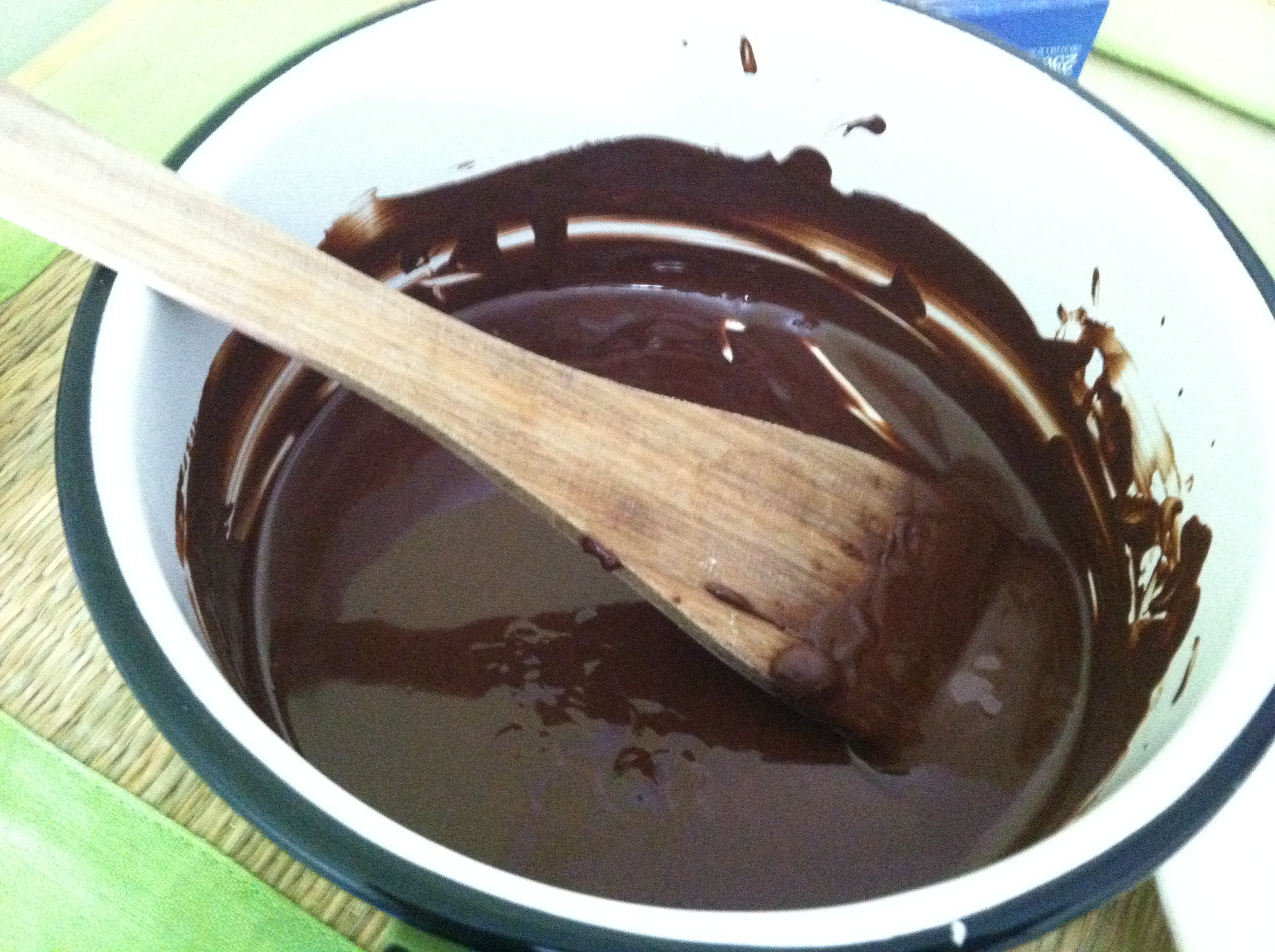 - Melt your chocolate in a double boiler (be sure not to splash any water inside or you’ll ruin your chocolate)