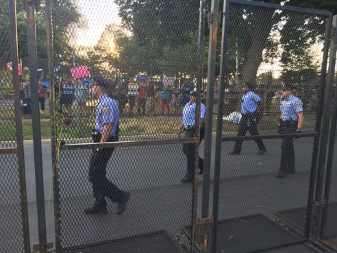 I met a pair of California delegates on the subway one afternoon. They were waiting by the exit, discreetly distributing blank sheets of white paper to Bernie delegates so that we could write our own messages to cover the standard issue signs from the DNC. “Our supporters don’t want us to back down,” one of them explained. “We have the largest delegation and we had to do a lot of fund raising to get here and the folks who donated to us don’t want us to be silent. They want to see us. And we owe it to them.”