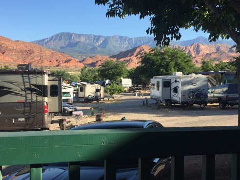 At any rate, we’ve made it Utah, to the outskirts of Zion National Park to be specific, where we’re staying in a “deluxe” camping cabin at the St. George/Hurricane KOA. The rental of said cabin felt like a betrayal of the more rugged days of my youth, when we were tent campers all the way (aside from that brief time for a period of several years when we had a genuine C-class motor home that slept 6 comfortably and had air conditioning and enough storage for about 7 pairs of shoes per person but we won’t mention that).